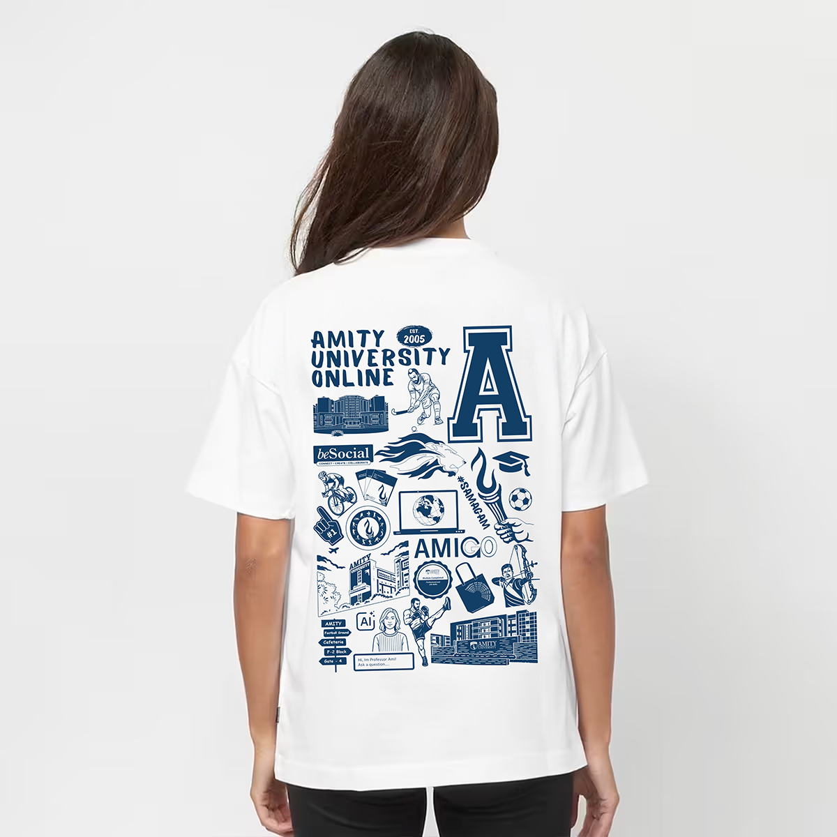 Stay effortlessly stylish with the Amity Scholar Sketch Oversized T-shirt in classic white. Made from premium cotton terry fabric (240 GSM), it offers a soft, comfortable feel with a structured look. The oversized fit ensures relaxed comfort and a modern aesthetic, perfect for casual wear or layering.
